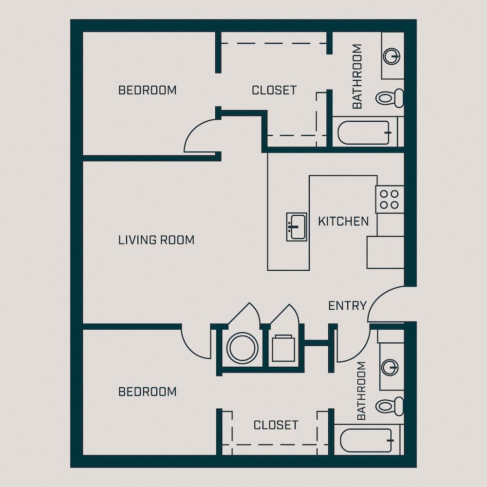 Hallway to apartment buildingsKitchen with white countertops and stainless steel appliances Kitchen with view of empty dining roomKitchen with white countertops and stainless steel appliances Kitchen with white countertops and stainless steel appliances Empty Living room with large windowsEmpty bedroom with windowsEmpty bedroomCloset and bathroom vanityBedroom with closetBathroom with vanity and showerShower with shelving storageBathroom with storage shelvesWasher and dryer